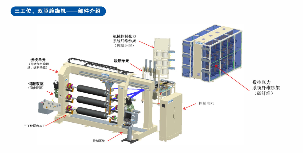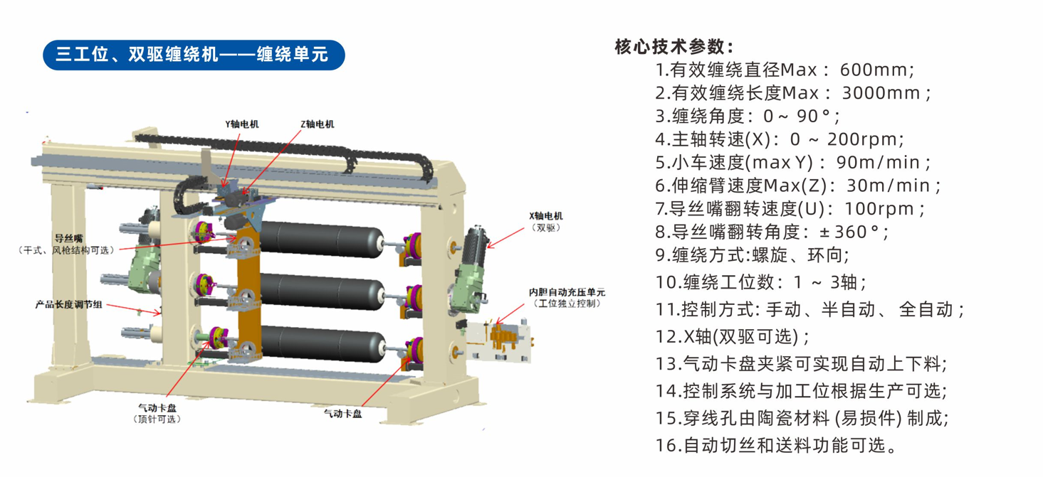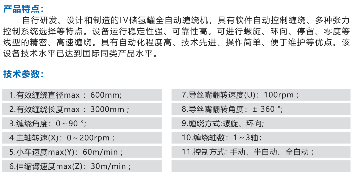 遠望智造,用實力創造價值! 我們在自動化設備制造領域,無所不能,無所不精! 自行研發,設計和制造的IV儲氫罐全自動纏繞機,具有軟件自動控制纏繞,多種張力控制系統選擇等特點。設備運行穩定性強,可靠性高??蛇M行螺旋、環向、停留、零度等線型的精密、高速纏繞。